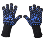 Deze super comfortabele en zeer flexibele BBQ/ hittebestendige handschoenen zijn voorzien van siliconen details. Deze siliconen details vormen een anti slip laag die zorgt voor een optimale grip op elk warm object. Dit model hittebestendige handschoenen is extra lang en biedt daardoor extra bescherming aan niet alleen de handen maar ook de polsen en onderarmen. De handschoenen zijn bestand tegen hoge temperaturen en bieden veiligheid tot wel 500 graden Celsius. Deze hoogwaardige handschoenen zijn bijzonder geschikt voor zowel binnen als buitengebruik, ze zijn perfect voor BBQ, houtblokken toevoegen aan een openhaard of kampvuur, ovenwerk, grillen, bakken, roken en nog veel meer handelingen waar gewerkt wordt met extreem warme objecten.