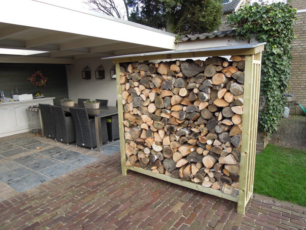 Deze haardhoudopslag, gemaakt van duurzaam Europees Vurenhout, gaat jarenlang mee, terwijl het ook nog eens je haardhout beschermt.
